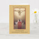 Dieses ist eine schöne Priesterschafts-Jahrestagskarte mit einer Vintagen heiligen Karte der Andenkens mit einem Priester, der die Masse an der Weihe auf dem Altar vor Jesus auf dem Kruzifix anbietet. Ein heller goldener Spitzehintergrund ist hinter dem Bild. Aller Schriftart und Texte können geändert werden.