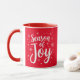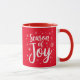 Elegante Schrift Weihnachtskaffee Tasse. Das Design enthält den Text "Season Of Joy" in weißer Typografie mit weißer Schneeflocke und Sternelementen. Macht das personalisiertste Geschenk für sich selbst, Ihre Freunde, Familienmitglieder und sogar Nachbarn. Wir haben mehr als 35 Weihnachtskaffeemassen in unserer Sammlung, dass Sie definitiv Liebe. Bitte Karo es aus. Frohe Weihnachten!