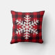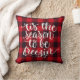 Vergnügungs-reversibles Weihnachtswerfen Kissen in einem roten und schwarzen Büffel karierten Hintergrund mit "Das ist die Jahreszeit zu frisieren" Typografie-Design auf der einen Seite und Schneeflocke auf der anderen.