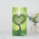 Ein Baum mit wirbelnden Ästen bildet die Form eines Herzens, umgeben von einem lebendigen grünen Hintergrund. Blätter und elegante Linien fließen durch und schaffen ein Gefühl von Bewegung und Harmonie.