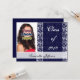Hübsches Marineblau und weiß lackiertes Damast Foto Einladung. Anpassen des Textes und der Foto. Fügen Sie Details auf der Rückseite, ändern Sie die Hintergrundfarbe, indem Sie auf "Anpassen", dann "Farben" und dann "Hintergrund". Ankündigen Sie den besonderen Tag mit dieser hübschen Girly Einladung.