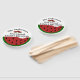 Niedliche, tropische, reife Wassermelonen-Scheiben mit einem Biss auf weißem Hintergrund. Große Scheibe unten und zwei kleine Scheiben zwischen Text. Nachname-Vorlage oben, Zahlenvorlage für die Jahreszahl und "Family Wiedersehen"-Text über einem großen Stück Wassermelone. Design ist vorne und hinten. Für Sie erstellte Vorlagen!