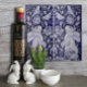 Dies ist die oberste links Kachel in einem vier - Fliesen kleinen Wandgemälde, oder die oberste Kachel in einem zwei=Kacheln kleinen Wandgemälde Die Farben sind reich dunkelblau mit Weiß. Ein kurioses Kaninchen und zwei Vögel besichtigen diesen Fantasiegarten, der von jakobischen Blumenmotiven sowie Delft, Dedham und Chinoiserie inspiriert ist. Whimsical, einzigartiges Kunstwerk & Design von Tuzi Williams.