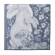 Dies ist die untere links Kachel in einem vier - Fliesen kleinen Wandgemälde, oder die obere Kachel in einem zweizieligen kleinen Wandgemälde Die Farben sind denim blauen Farbton mit Weiß. Ein kurioses Kaninchen und zwei Vögel besichtigen diesen Fantasiegarten, der von jakobischen Blumenmotiven sowie Delft, Dedham und Chinoiserie inspiriert ist. Whimsical, einzigartiges Kunstwerk & Design von Tuzi Williams.