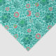 Zierpapier in einem William Morris Tapete-Design von türkisfarbenen und echten Blume, mit Korallenorange und Kalkgrün dekoriert, vor einem pastellfarbenen Aqua-Hintergrund