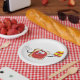 Ein Stück Toast mit Marmelade und einem glücklichen Gesicht. Dieses Design wirkt auf diesen Paper-Tellern sehr effektiv