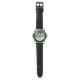 Herrenuhr aus Edelstahl mit schwarzem Lederarmband
