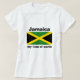 An der Vorderseite dieses Shirts steht ein editierbarer Titel und Slogan, der die jamaikanische Flagge mit ihrem gelben diagonalen Kreuz auf grün und schwarz begleitet. Die Rückseite zeigt eine detaillierte Karte von Jamaika.