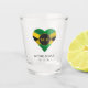 Jamaika schoss Glas mit jamaikanischem Fahnen-Herz und Monogramm-Initialen. Gut für eine Hochzeit in Urlaubsort.