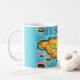 A wonderfully colorful retro postcard map from Jamaica repurposed on a mug.