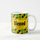 Dies ist eine lebendige patriotische JAMAICAN Fahne Tasse in den Landesfarben Gelb, Grün und Schwarz, in einem gefliesten Muster auf gelbem Hintergrund. Der Haupttext besagt BLESSED und die Schriftzeichen sind EPHESIANS 1:3. Diese Tasse würde dem patriotischen JAMAIKANER zum Geburtstag, zu Weihnachten, zum Muttertag, zum Vatertag, zum JAMAIKANISCHEN Unabhängigkeitstag ein hervorragendes Geschenk machen. Es wäre auch ein großartiges Geschenk für den Schwarzen Geschichtsmonat oder während Kwanzaa. Es gibt viele Varianten in der JAMAICA Kollektion von Berean Designs, zusammen mit vielen Produkten, mit denen Sie phantastische Geschenkartikel Sets erstellen können.