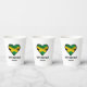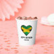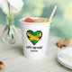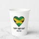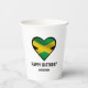 Jamaika Papier Tasse mit herzförmiger, grüner, schwarzer und goldener jamaikanischer Flagge. Großartiger Party Becher für jamaikanische Themenveranstaltungen für Damen und Herren. Passen Sie den Text mit Ihren persönlichen Daten an: Name, Branding, Event-Infos, etc.