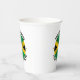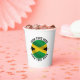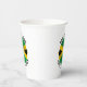 Jamaika Papiertasse mit runder schwarzer, goldener und grüner jamaikanischer Flagge. Passen Sie es an, indem Sie Ihren eigenen Text hinzufügen: einen Namen, Geschäftsdetails, etc.. Großartiges Party für jamaikanische Männer und Frauen.