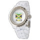 Frauenuhr zeigt die grüne, gelbe und schwarze jamaikanische Flagge mit dem Wort JAMAICA unten, auch in den Farben der Flagge. Oben, ein Ort für Sie, um mit Ihrem Namen zu personalisieren, oder, erstellen Sie ein maßgeschneidertes Geschenk für sie, indem Sie den Namen einer anderen Person. Wunderbar in Wiedersehen, Reisegruppen und Clubs.