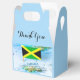 Jamaika Inselkarte mit jamaikanischer Flagge danke Ihnen Gastgeschenk Box für Party. Hellblauer Hintergrund mit schwarzem Text. Ideal für Jamaikaner oder Liebhaber der Insel / Karibik Kultur. Auch großartig für eine Jamaika-Hochzeit in Urlaubsort. Passen Sie den Text an, um Ihren Anlass Anzug.