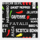 Karo dieses spaßigen Wallpaper mit den Namen der Paprikaschoten des heißen Chilis, Illustrationen der bunten Paprikaschoten, alles auf einem schwarzen Hintergrund. Ideal für jamaikanische Restaurants, karibische Küchen oder für alle, die einen würzigen Chili Lieben.