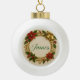 Celebrate the season with this stunning personalized Christmas ornament featuring the name James in elegant holiday script. Surrounded by a classic wreath and framed in a vintage snowflake-style ceramic ball, this timeless keepsake makes a perfect gift for loved ones or a beautiful addition to your own tree.