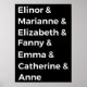 Elinor und Marianne und Elizabeth und Fanny und Emma und Catherine und Anne.