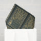 Jane Austen Fächerpapier mit einem Bild von Pride und Prejudice Buchcover, dunkelgrün mit einem Imitat vergoldeten Pfau.