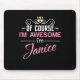 Janice Natürlich bin ich Phantastisch, ich bin Janice - in gemischt weiß und rosa Sans Serif und dekorative kursive Schriftart Schrift mit Scroll-Verzierungen und überragt eine goldene Krone.