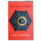 Wandkalender mit schöner Fotografie der japanischen Szenen und der Gegenstände, die das Farbrot kennzeichnen.