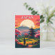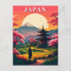 Eine farbenfrohe japanische Postkarte mit dem Fuji, einer traditionellen Pagode und Kirschblüten in einer Retroillustrierung. Ein perfekter Sake für Besucher, Sammler und Liebhaber der japanischen Kultur und Landschaft.