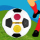 Patriotischer japanischer Fußballball mit japanischer Fahne, Emblem - modernes Design mit leicht anpassbarer Nachricht und optional ein oder zwei Fotos einfach mit personalisiertem Knopf hinzugefügt (aktivieren Sie Fotos im editieren, wenn Sie wollen).