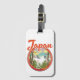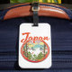 Japan Reiselogo mit der Landschaft mit einem schneebedeckten Berg und Bäumen.