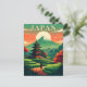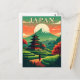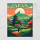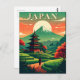 Eine atemberaubende Retrokarte Japans mit einer traditionellen Pagode, üppigen grünen Terrassen und dem berühmten Fuji-Berg bei Sonnenuntergang. Ideal für Sammler, Reisende und Liebhaber der japanischen Kultur.