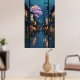 Japanese Alley Rain Night Cozy Anime Blossom urban Poster