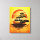 Beautiful illustration of a Japanese bonsai tree against a colorful sunset. Very tranquil und peaceful image.