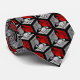 Krawatte in einem klassischen japanischen Kimono-Muster aus stilisierten Kranen, in Hexagons, in tiefrot, leicht und mittelgrau/grau, auf schwarzem Hintergrund angeordnet