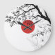 Japanese Red Sun & Brush Tree Art Große Wanduhr