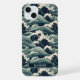 Make a statement with this iphone 15 plus phone case that features rolling Japanese waves in multiple shades of teal blue. It's modern yet traditional. The pattern represents surges of good luck, peace, and eternal resilience. It becomes uniquely yours with your name in a CAP font in white on dark teal.
