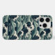 Make a statement with this iphone 15 pro max phone case that features rolling Japanese waves in multiple shades of teal blue. It's modern yet traditional. The pattern represents surges of good luck, peace, and eternal resilience. It becomes uniquely yours with your name in a CAP font in white on dark teal.