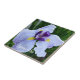 Keramik Kachel, die das Foto einer japanischen Iris Blüte mit lila, weißen und gelben Blütenfarben zeigt. Ein schönes, blumengeschmücktes Design! Wählen Sie Ihre Kachelgröße aus. Macht eine hübsche Küche trivet!