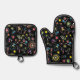 Japanisch Kawaii Kultur Doodles auf schwarz Ofenhandschuh & Topflappen-Set