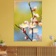 Farbenfrohe japanische Aprikosen-Blume vor dem gelben und blauen Hintergrund. Die Schönheit des Frühlings, Hanami - blühende Sakura Beobachtungssaison. Poster oder Druck, um Ihren Ort zu dekorieren oder als Geschenk zu geben. Sie können den Typ und die Größe des Drucks auswählen. Sie können dieses Design auf hunderte andere Produkte übertragen, wählen Sie einfach eines aus der Produktlinie unter dem Bild.