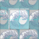 Eine große Welle ist dieses Küstenthemenwerk. Diese Welle basiert auf einem Vintagen japanischen Ozeanwellenkunstdruck und ist eine große Welle in sanftem Blau und klassischen japanischen Kunstwerken.