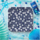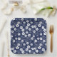 Vector Illustration von stilisierten weißen Sakura Kirschblüten Blume und Wirbel auf blauem Hintergrund. Inspiriert durch traditionelle Kimono-Stoffmuster aus Japan.