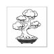 Einfache Schwarz-Weiß-Abbildung eines japanischen gedrehten Bonsai-Baumes in einem flachen Tablett. Bonsai ist eine japanische Kunstform, in der Bäume in Containern angebaut werden.
