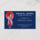 Eine Visitenkarte im japanischen Stil, geeignet für japanische Hausgeräte oder Kunstgeschäfte. Aus einem Originalgemälde des Künstlers Sacha Grossel von einem japanischen Geisha, das in traditioneller Kleidung mit einem Regenschirm verkleidet und in einem roten und rosa Kimono gekleidet ist. Diese niedliche asiatische Kunststil-Illustration ist farbenfroh, und die Hintergrundfarbe und der Text können in Anzug gesetzt werden.