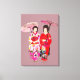 Japanische Geisha Ladys Rosa Kimono Originalkunst Leinwanddruck