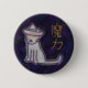 Ein niedlicher Hexenkatzen-Knopf mit dem japanischen Wort für magischen Zauber.