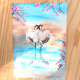 Tancho rote Krane tanzen unter den Frühlingskirschblüten. Die japanische Sakura Hochzeitskunst symbolisiert die Langlebigkeit der Braut und des Bräutigams. Rot gekrönte Kraniche sind schön mit Frühlings-Rosa Kirschblüten. Die Akrylkunst zeigt Tanchokrane, die auf einer wunderschönen Wasserpfütze mit Wirbel in weichem Beige tanzen. Asiatische Krane Hochzeitsmotiv-Malerei ist vielseitig für blaue, türkisfarbene, rosa und rote Hochzeitsfarben.