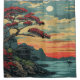 Japanische Landschaft Linocut Kunst inspiriert durch alte Gemälde, die in Japan in Büchern und Tapeten gefunden wurden.