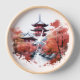 Traditionelle Abbildung einer japanischen Landschaft mit Pagode-Küste und Herbst, wirklich anpassbar an jede Art von Druck.