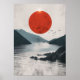 Japan Landscape Silhouette Plakatdesign mit See, Berg, Sonne und Himmel mit japanischer Malerei und minimalistischem Stil. Mit diesem minimalistischen Landschaftsdesign schaffen Sie eine japanische Malatmosphäre für Ihr Zimmer. Geeignet für das Wohnzimmer, Schlafzimmer, Büro, Bad, oder wo Sie möchten, eine minimalistische Touch zu Ihrem Zuhause.