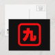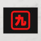 Japanische Nummer neun 九 【Kyu】 Kanji Postkarte