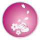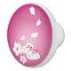 Ein lila Türknauf mit einer Illustration von zwei Schneehasen, zwei Sakura-Blume und vier Sakura-Blume-Blättern.